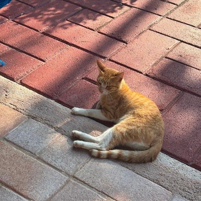 They’d show up at meal times, meowing outside the screen door. When we’d laid the patio table with clay dishes full of Tacos Al Pastor, they’d rub against our legs, giving us their most plaintive feline faces.